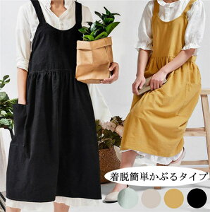 2点セット シンプル カフェエプロン 北欧風 チュニックエプロン ワンピース レディース ナチュラル かぶり ゆったり ロング 大きいサイズ ポケット付 無地 保育士 キッチン 着脱簡単かぶるタイプブラック イエロー ベージュ ライトグリーン ef004d4d4d4